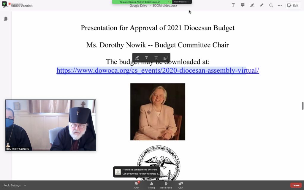The Diocese of the West held its annual Diocesan Assembly via Zoom this year, and with well over 100 participants, it was a success (Glory to God!). The 2019 assembly minutes were accepted, the 2021 budget was passed, and a new Diocesan Council elected, all from the comfort of the delegates’ homes. While we were all sorry not to have had the chance to travel to and enjoy the hospitality of St Paul Church in Las Vegas, NV, the original host parish for 2020, nonetheless we were grateful to God for the capability of taking care of the necessary business aspects of Diocesan life despite living in the middle of a pandemic.