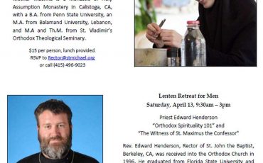 St Michael Orthodox Church in Concord, CA will be hosting two retreats during this lenten season!