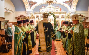 On Sunday, May 27, the great and last day of Pentecost, the feast of the Trinity, we celebrated our patronal feast day. His Eminence, Archbishop Benjamin, was assisted by Mitred Archpriest Ian MacKinnon, former Chancellor of our Diocese; Protopresbyter Joseph Kwame Ayete Labi; Archpriest Kirill Sokolov, Cathedral Dean; and Priest Peter Fermeglia. At the Little Entrance, His Eminence bestowed the dignity of wearing the kamilavka upon Protodeacon Brendan Doss. This high honor had been awarded by the Holy Synod of Bishops at its spring session. At the Kneeling Vespers and Molieben, we were joined by Mitred Archpriest Peter Perekrestov of Holy Virgin Cathedral (ROCOR) in San Francisco.