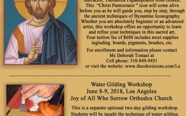 In June 2018, the master iconographer and world renowned icon painting instructor Theodore Papadopoulos will be coming to Los Angeles to provide his 6-day icon painting workshop and 2-day gilding workshop. This is his only stop in Southern California, and we are honored to have him come to our "Joy of All Who Sorrow" OCA mission in Culver City to teach. Mr. Papadopoulos will be providing most supplies, including boards, pigments, brushes, etc. The daily sessions will run from 9:00 am to 4:30 pm (or up to 6:00 pm, as needed). The best accommodations are through Airbnb, which are readily available in Culver City, including houses or apartments/condos to share, if desired. One of our participants has already found a walking-distance Airbnb for $60 per night.